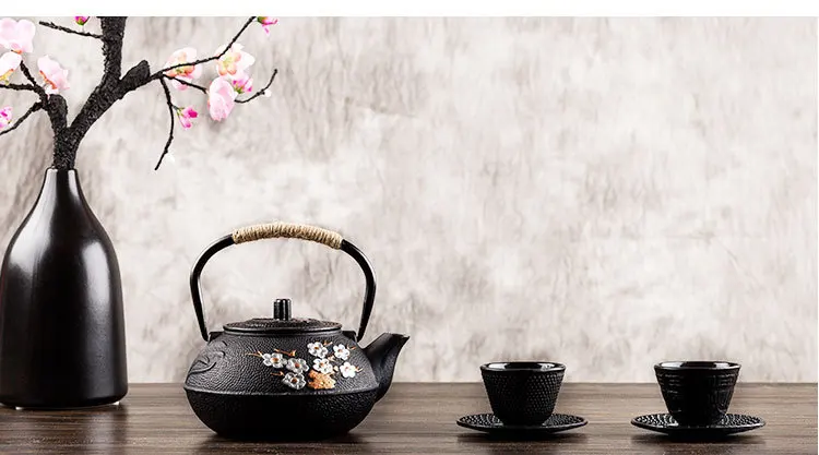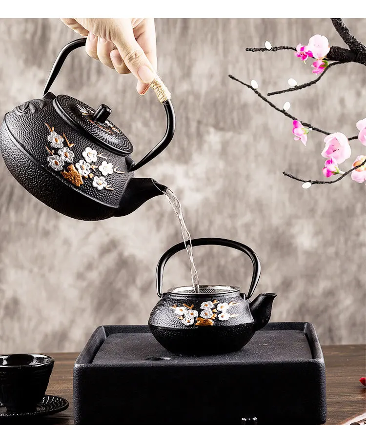 Exquisite Japanese teapot, painted plum and bamboo series, cast iron kettle, water boiling set with strainer