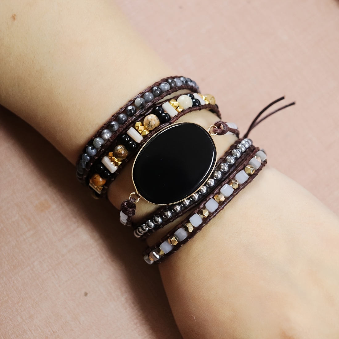 This handmade black agate bracelet is a stylish and unique addition to your jewelry collection. Each piece is carefully crafted to highlight the healing properties of black agate, which is said to bring balance and protection. Make a statement of style and well-being with this beautiful bracelet.