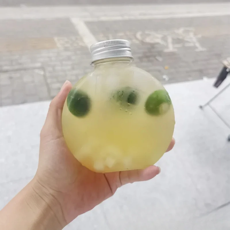 Botellas de plástico con forma de bola de 300ml botella de agua de plástico con tapas