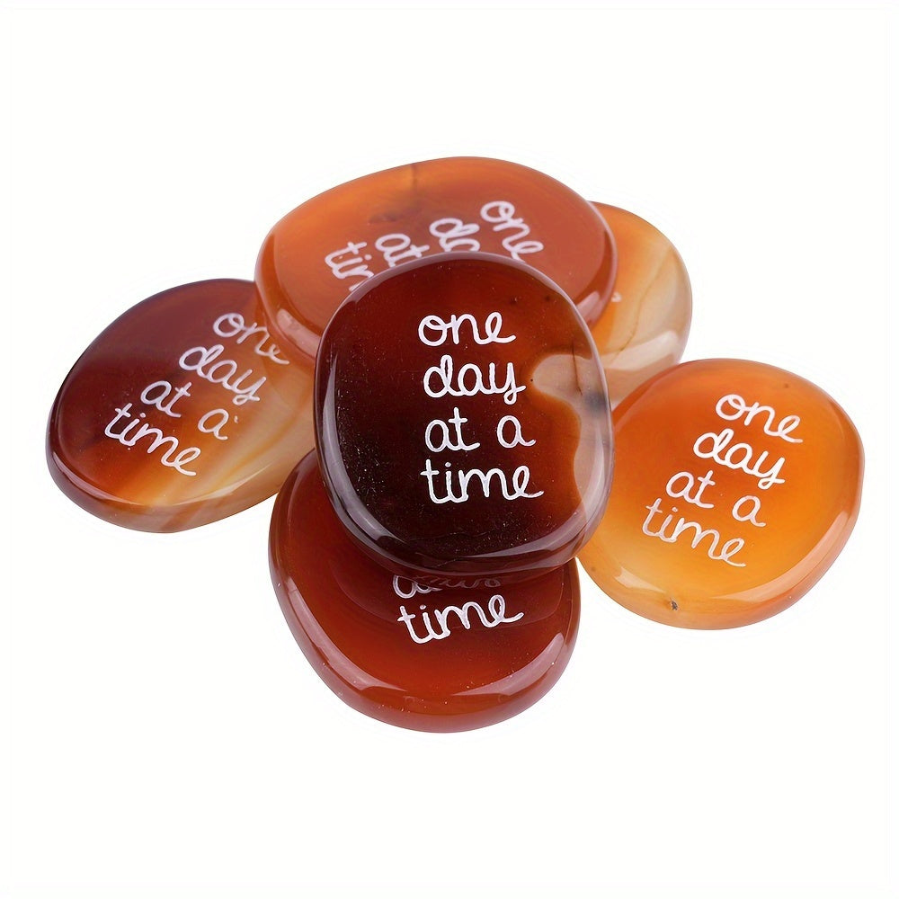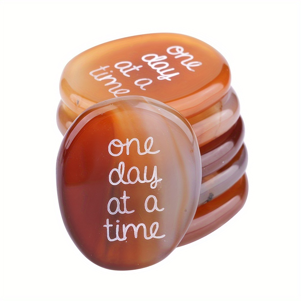 Este Un día a la vez Cristal de ágata es una pieza única tallada a mano de ágata natural que ayuda a promover la tranquilidad y la paciencia. Su diseño simboliza vivir cada día al máximo y disfrutar del momento presente. Perfecto para decorar su hogar o como un regalo significativo para un ser querido.