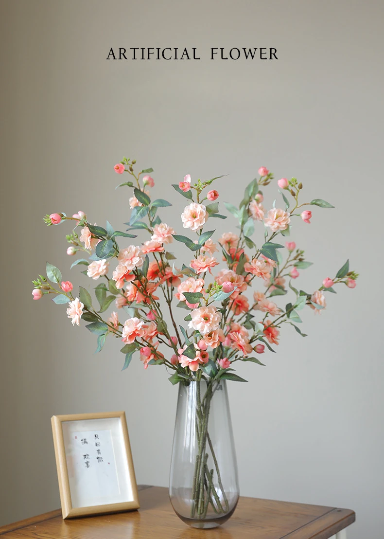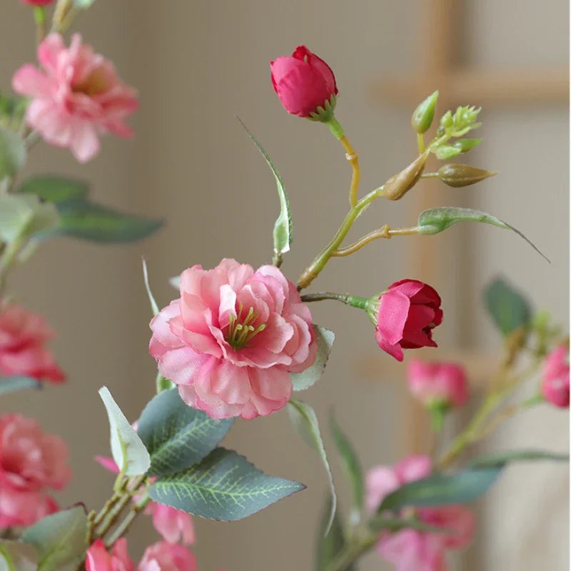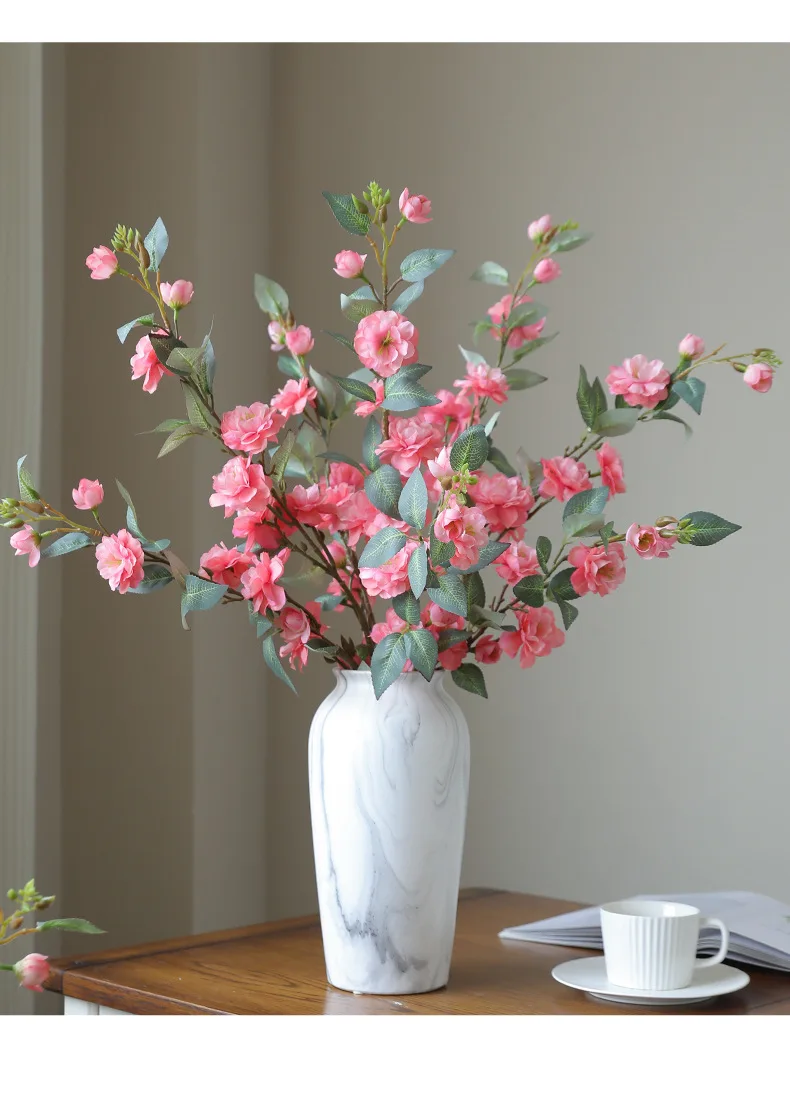 Nuestra rama de camelia artificial es perfecta para añadir un toque de elegancia y naturalidad a tu hogar u oficina sin preocuparte por el cuidado. Hechas con materiales de alta calidad, nuestras flores son realistas y duraderas. ¡Consigue un 100% de belleza sin esfuerzo!