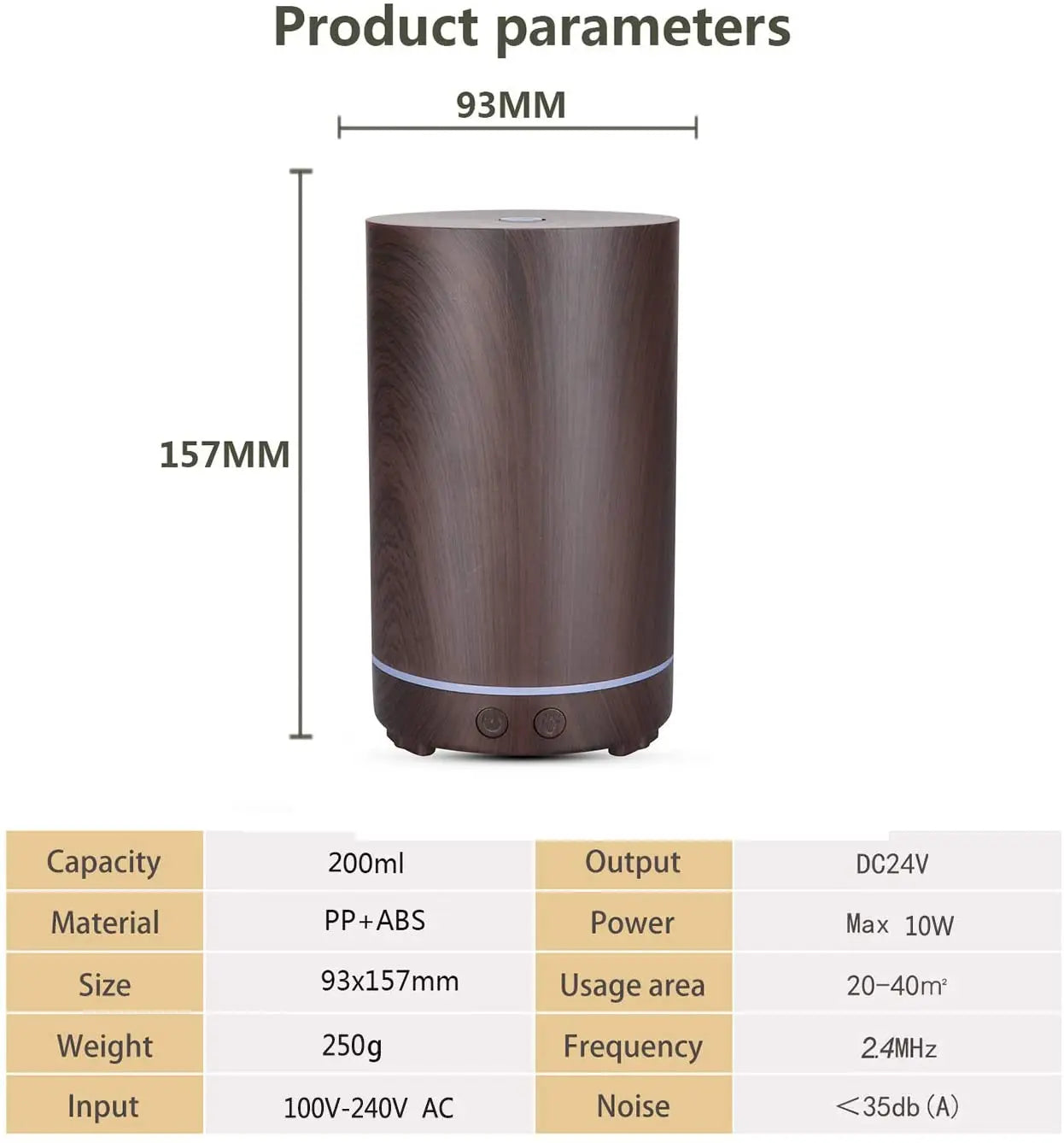 Este mini difusor portátil es perfecto para disfrutar de los beneficios de la aromaterapia en cualquier lugar. Con una capacidad de 200 ml y tecnología ultrasónica, difunde aceites esenciales en el aire para una atmósfera relajante. Hecho de grano de madera y con siete luces LED, es una forma natural y elegante de purificar el aire y agregar una suave luz ambiental.