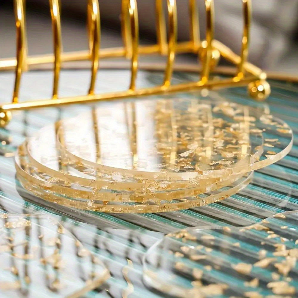 Protege tus muebles con estilo con estos 6 posavasos acrílicos de lámina dorada. Cada posavasos está diseñado con una lámina dorada para añadir un toque de elegancia a tu hogar. Flexibles y duraderos, estos posavasos protegen tus superficies mientras añaden un toque de brillo a tu decoración.