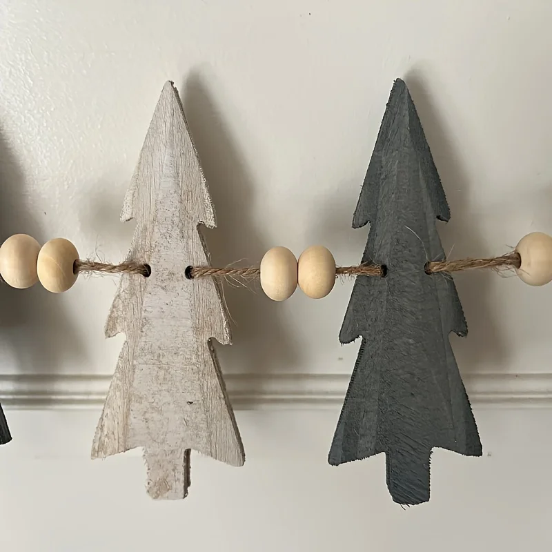 Decoración perfectamente combinada con 12 árboles y cuentas de madera, decoración navideña