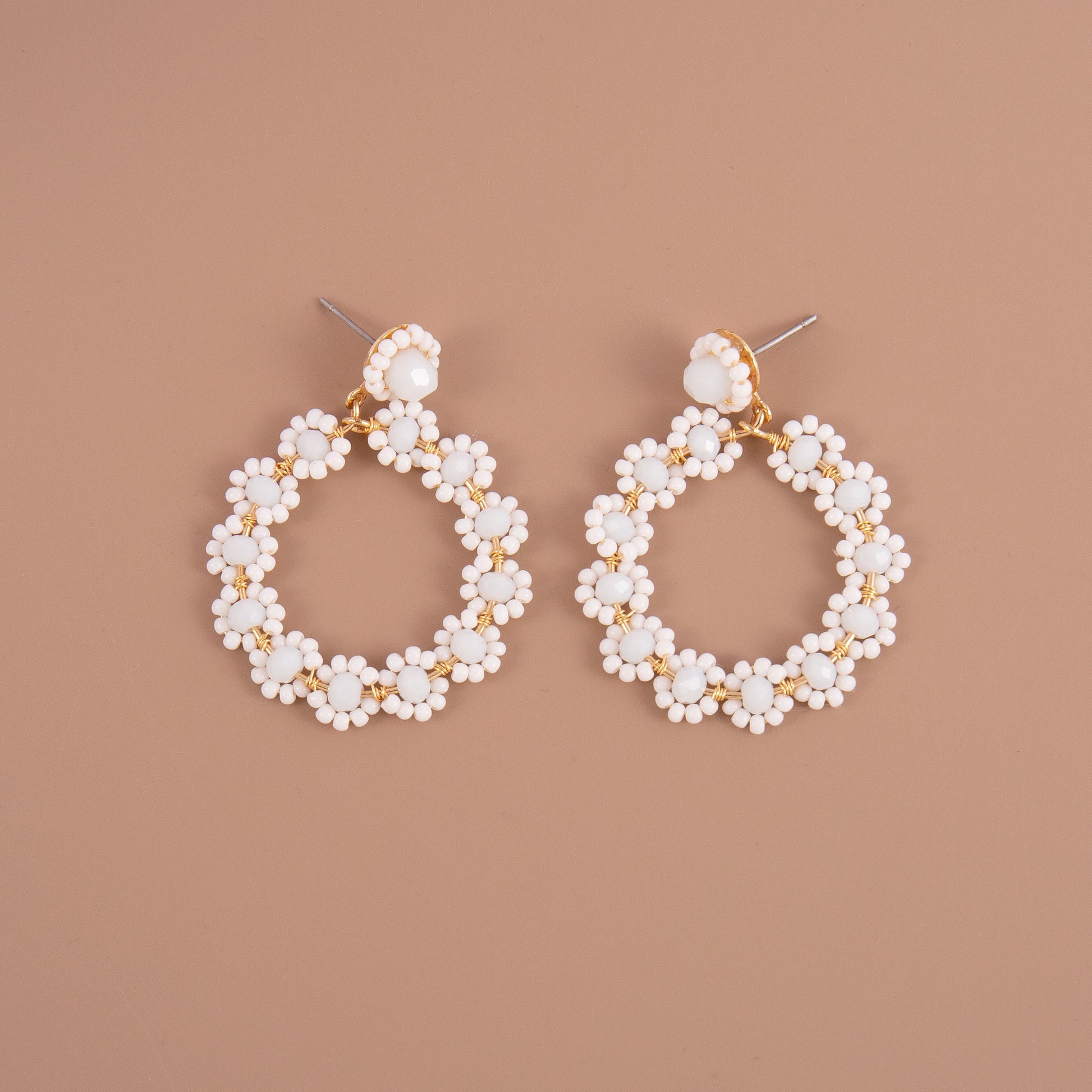 Pendientes colgantes de flores con cuentas blancas hechas a mano
