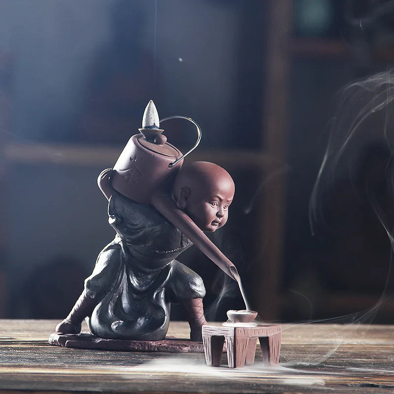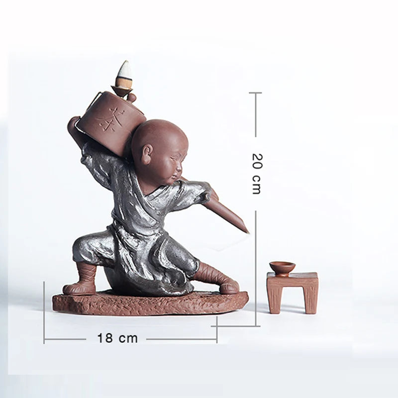 Este quemador de incienso de reflujo presenta un diseño único de monje de kung fu en cerámica. Ideal para relajar y meditar, el incienso de reflujo se quema de manera relajada y produce una fragancia calmante. Experimenta una experiencia de bienestar con este quemador de incienso.