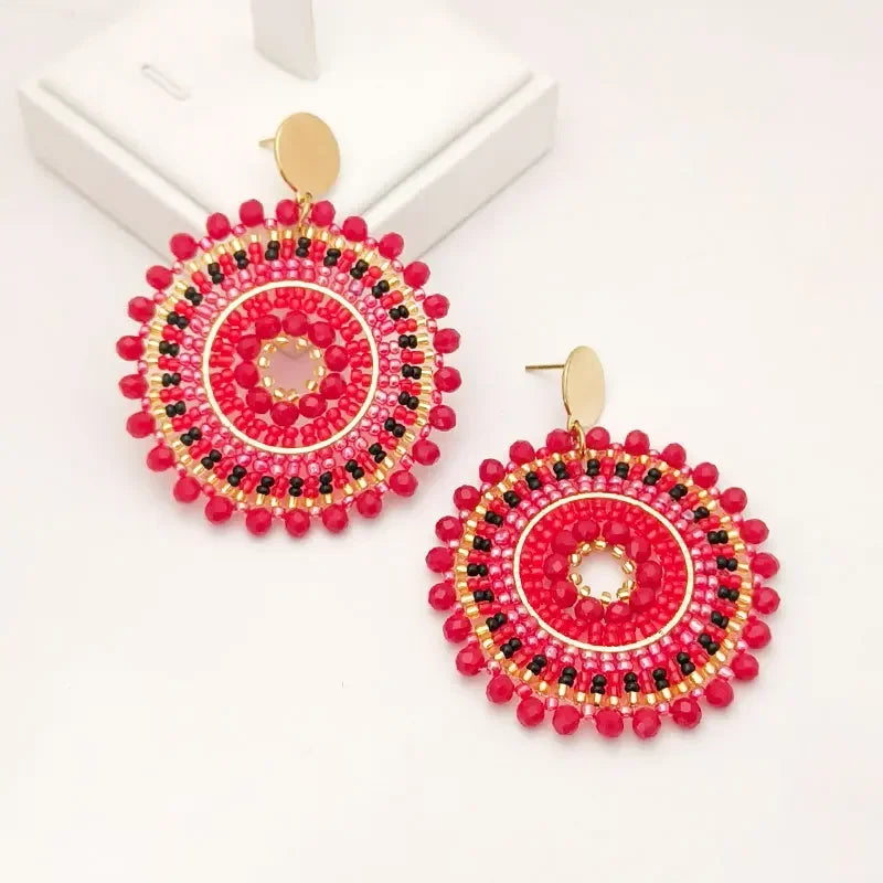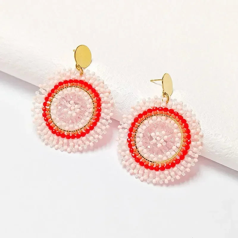 Pendientes de cuentas de arroz de aleación de Bohemia , cristal simple tejido a mano