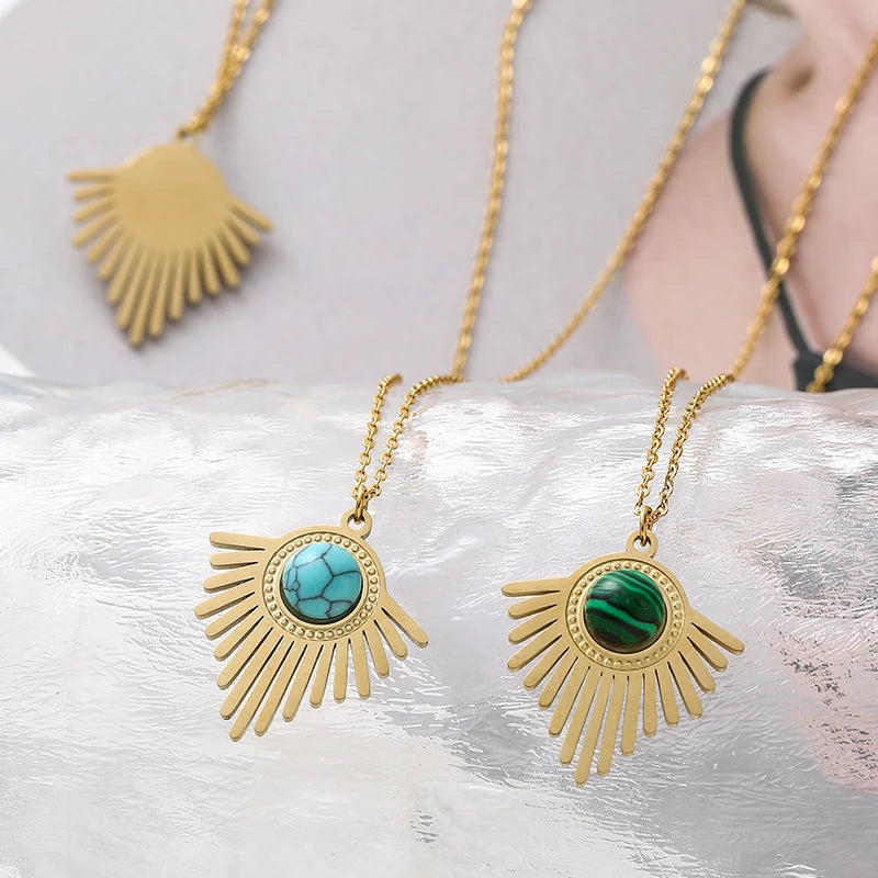 Este collar Bohemio de acero inoxidable tiene un colgante de piedra natural triangular, agregando un toque de diseño geométrico a tu look. Hecho con materiales de alta calidad, es duradero y elegante para cualquier ocasión. Añade un toque de estilo único a tu atuendo con este collar de piedra natural.