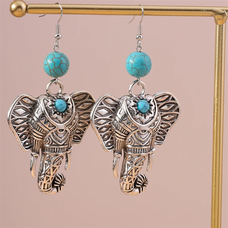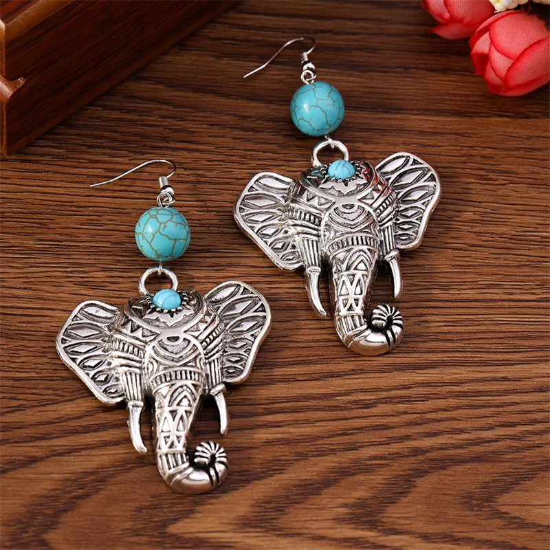 Pendientes colgantes de elefante grande de metal