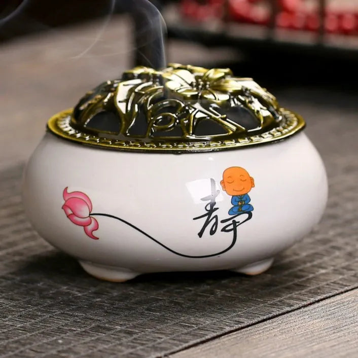 El quemador de incienso diseño creativo es la combinación perfecta de belleza y funcionalidad. Hecho de cerámica de alta calidad, este quemador es ideal para añadir un toque de elegancia a tu hogar mientras disfrutas de los beneficios relajantes del incienso. Diseñado para quemar incienso de forma segura y eficiente, este quemador te ayuda a crear un ambiente tranquilo y armonioso.