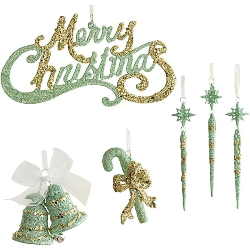 Estas bolas de Navidad con forma de cono pintadas de verde son un adorno perfecto para tu árbol de Navidad. Con su diseño festivo y alegre, agregarán un toque de felicidad a tu hogar durante las fiestas. Además, son un regalo de Navidad ideal para tus seres queridos. ¡Haz que esta temporada sea aún más especial con estas hermosas bolas colgantes!