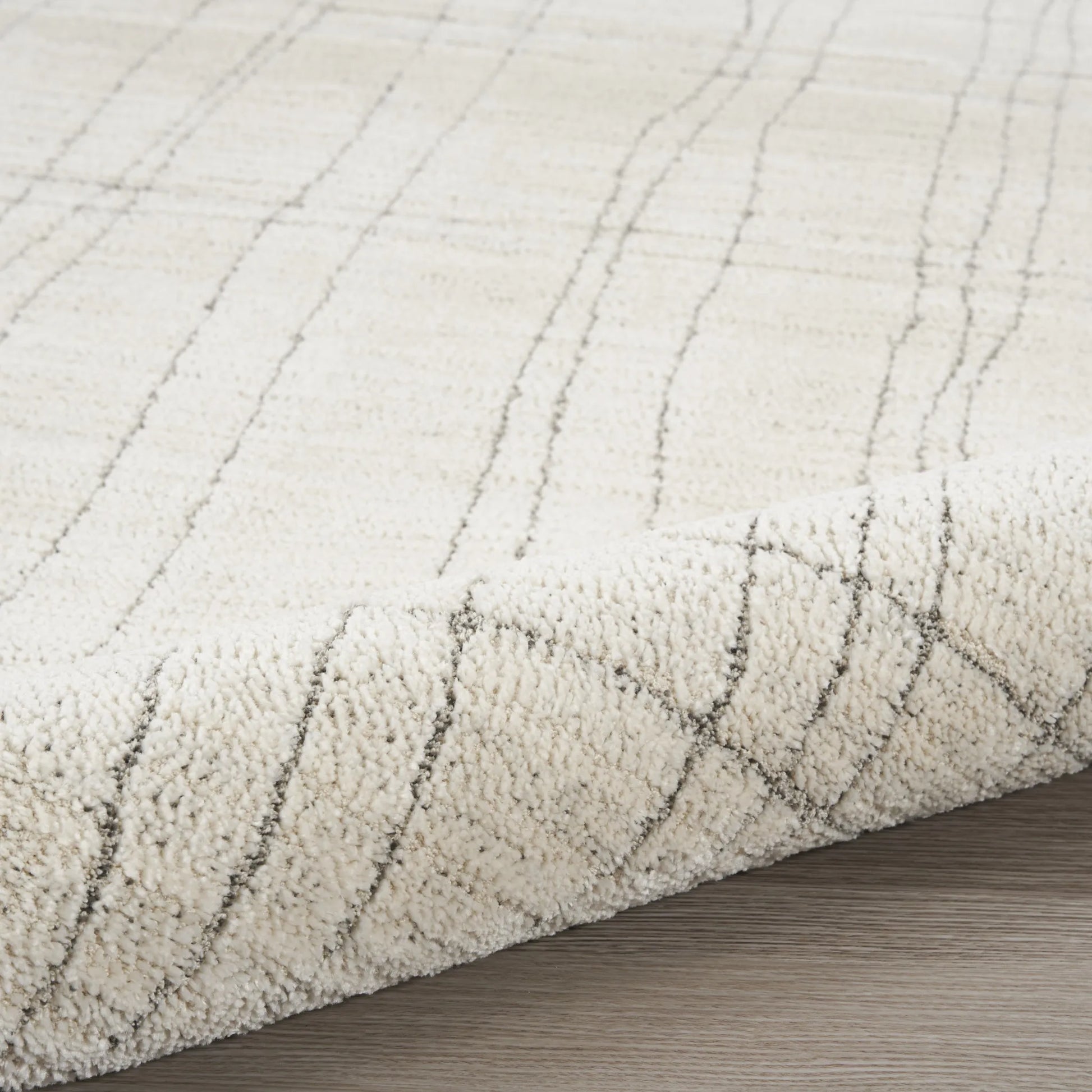 Alfombra de Corredor Gris Marfil Hecha a Mano Lana Poliéster Algodón