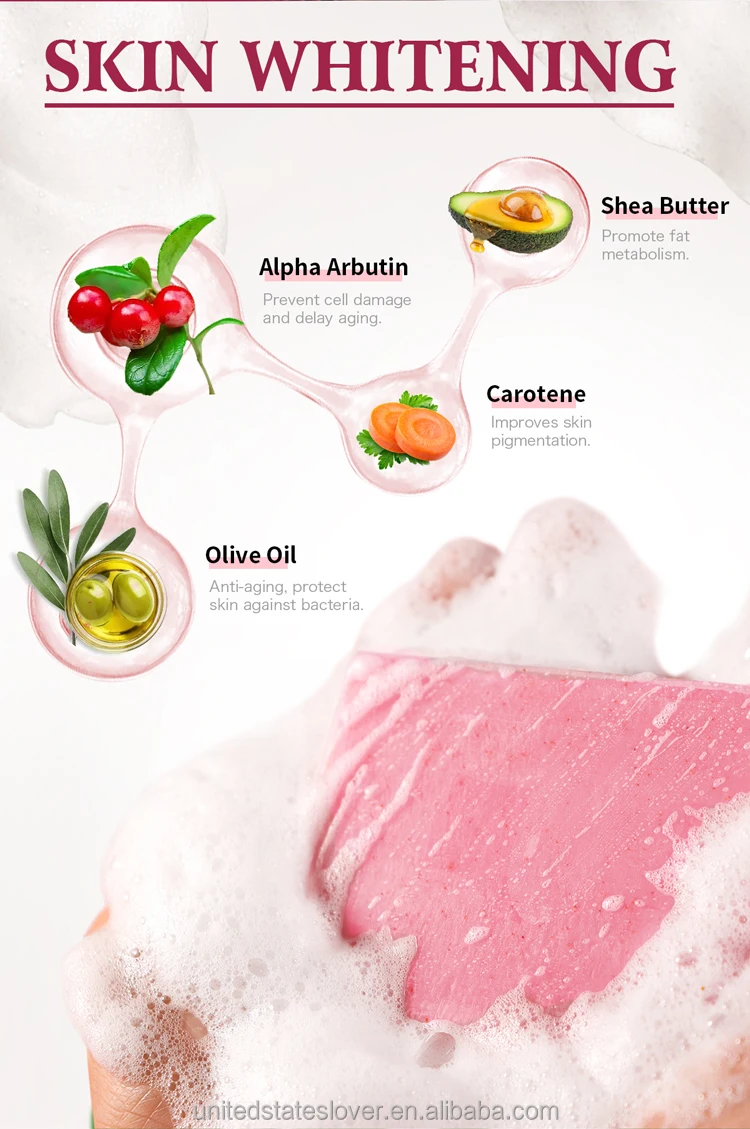 Este jabón hecho a mano de 200g tiene extracto de arbutina y manteca de karité para cuidar tu piel. También contiene aceite esencial de rosa, aceite de oliva y semilla de consuelda para hidratar. Con agua, aceite de laurel y otros ingredientes naturales, deja tu piel suave y limpia.