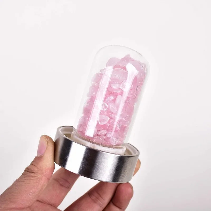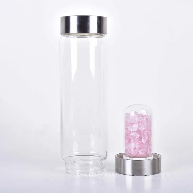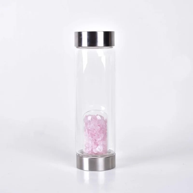 Obtén la máxima pureza y elegancia con nuestra botella de agua de acero inoxidable, decorada con una piedra preciosa tallada a mano. Mantén tu agua fría por horas, mientras disfrutas de su belleza y propiedades naturales. ¡Una opción sostenible y lujosa para hidratarte en todo momento!