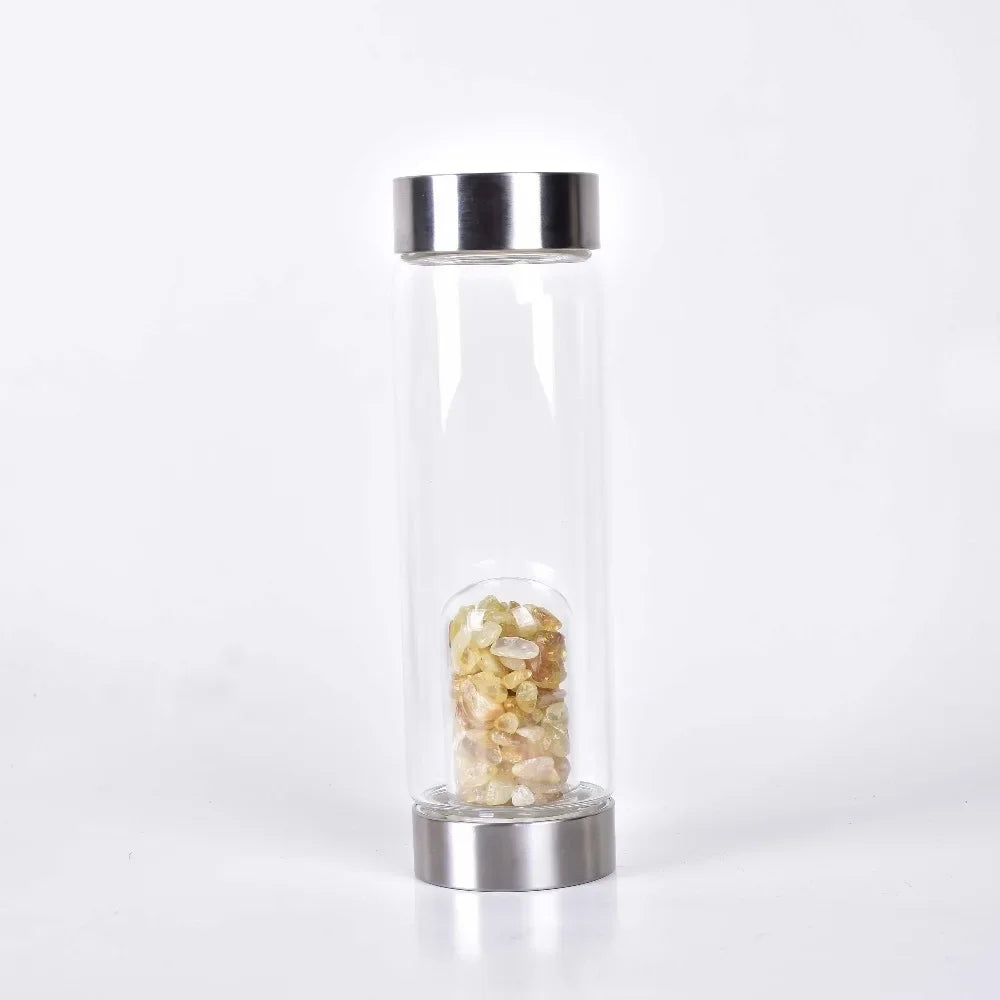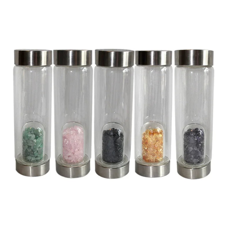 Botella de agua de acero inoxidable con piedra preciosa, tallada a mano