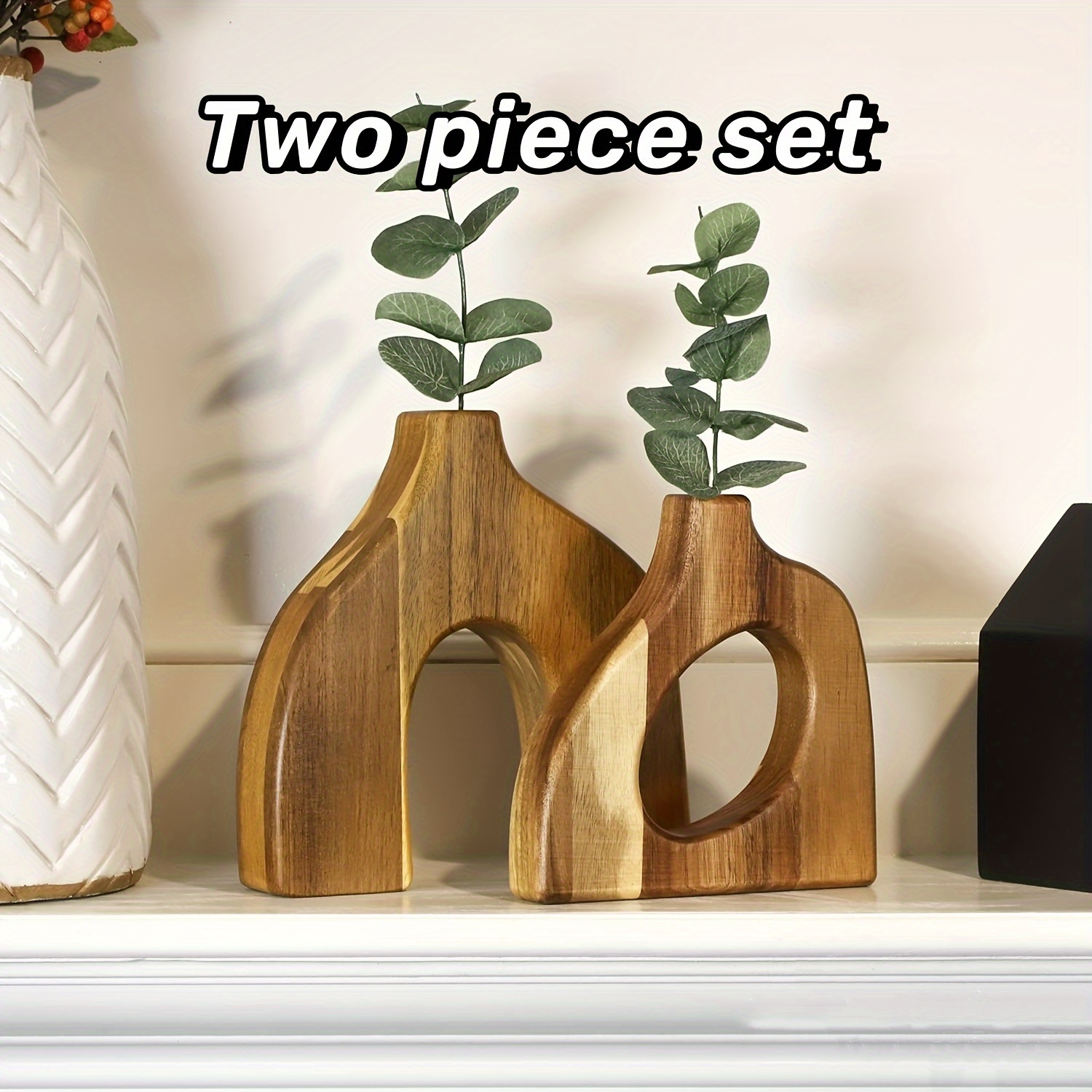 Este conjunto de 2 jarrones cilíndricos de madera ofrece un estilo rústico y natural a cualquier espacio. Hechos a mano con madera de alta calidad, estos jarrones son duraderos y resistentes. Agrega un toque de encanto rústico a tu hogar o regálalos a un ser querido.