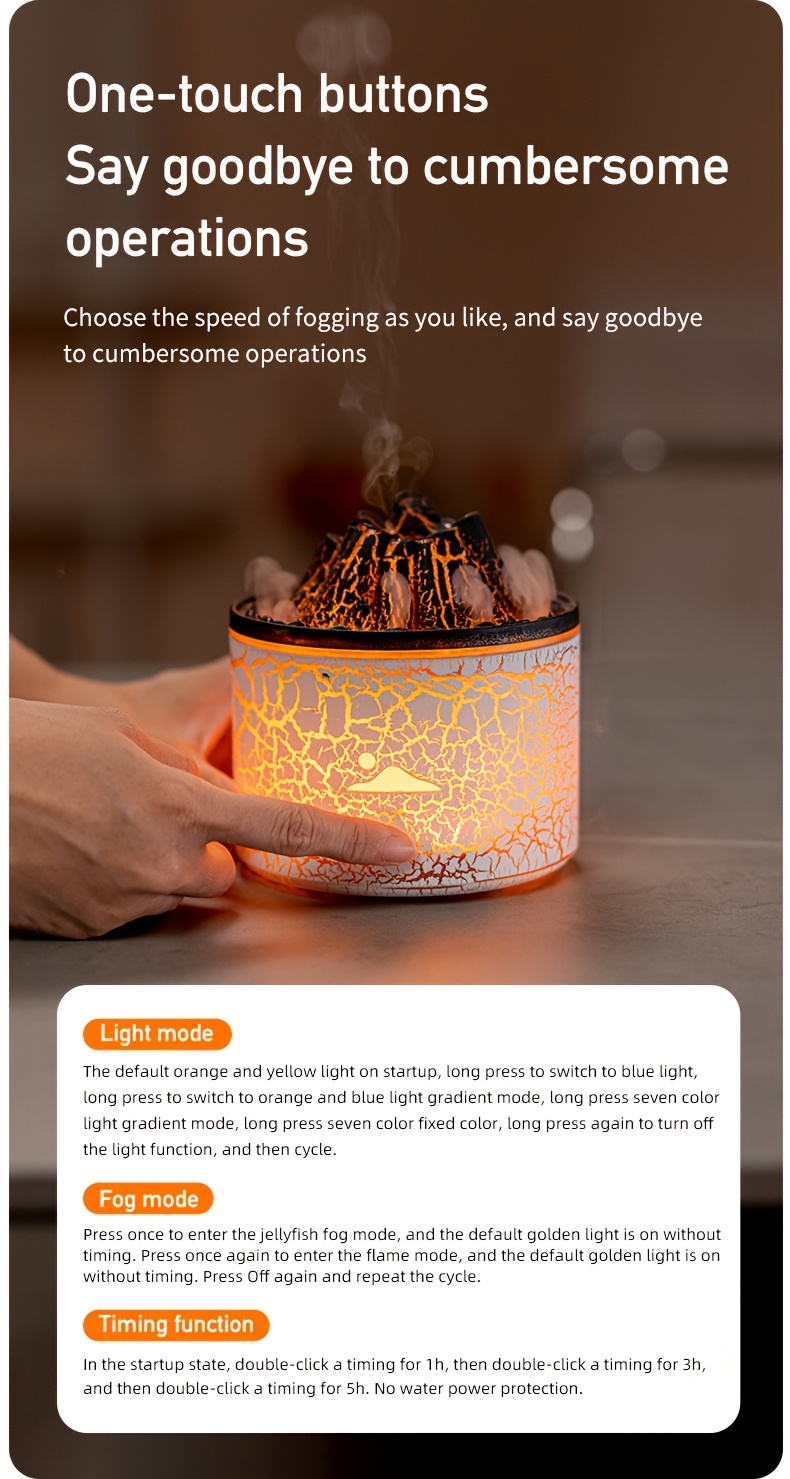 El Difusor de Aceites Esenciales de Volcán con Luz Colorida es el complemento perfecto para crear un ambiente relajante en tu hogar. Con su capacidad de 6,09 oz, este mini humidificador de aire USB utiliza un modo de llama y niebla volcánica para difundir los beneficiosos aromas de los aceites esenciales. Cuenta con un temporizador y apagado automático, ideal para el dormitorio u otras habitaciones del hogar. Disponible en 2 colores para adaptarse a cualquier decoración.